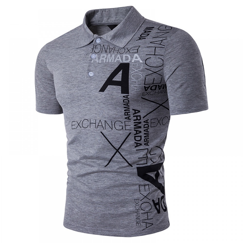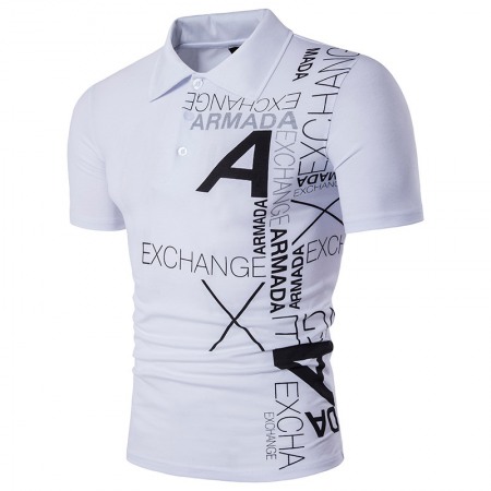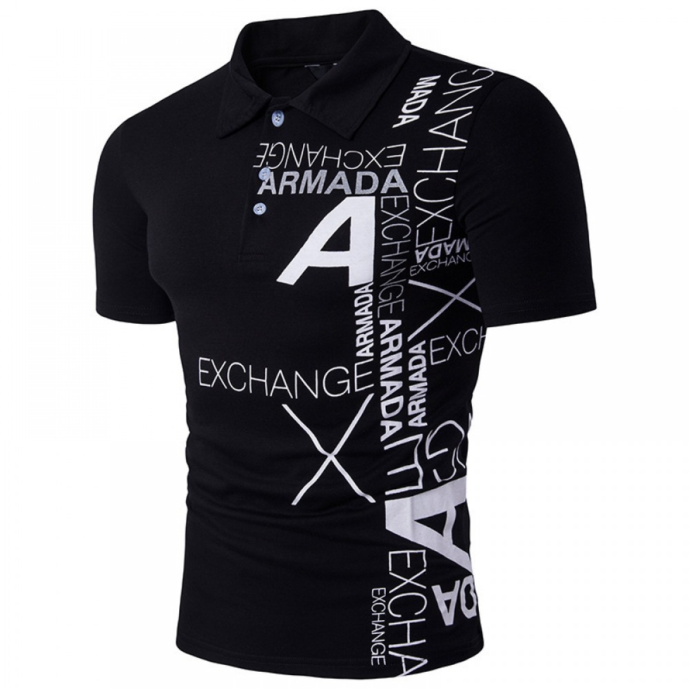 Hollow Men's Style A Letter Printing Lapel Short Sleeve Large Size T-Shirt