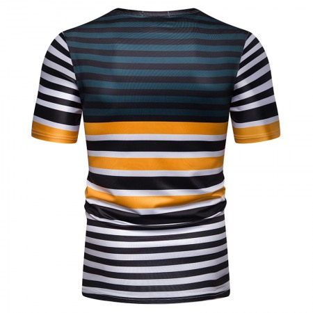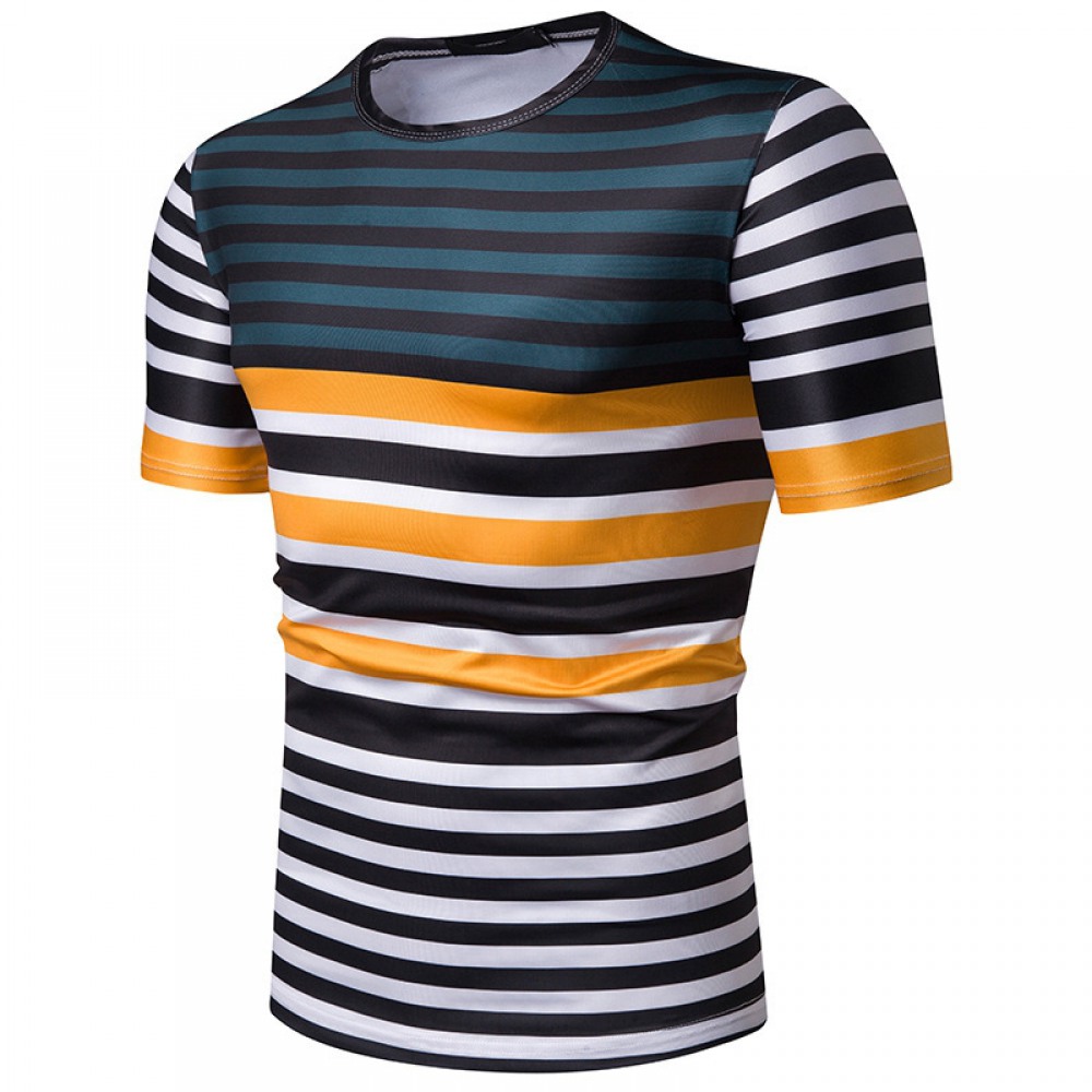 New Summer Men's Short-Sleeved T-Shirt Men's Contrast Striped Slim Casual T-Shirt